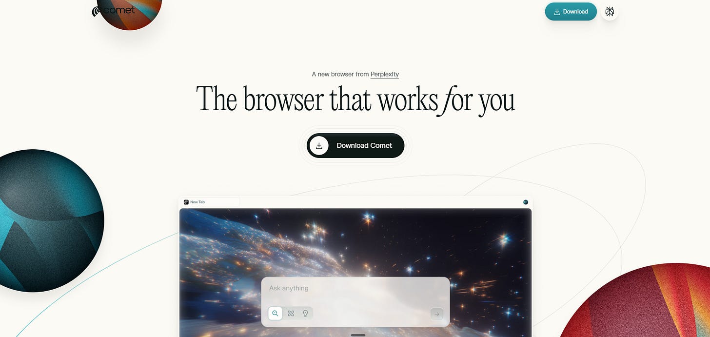 Accessing Comet is straightforward. Visit perplexity.ai/comet and download and install the browser.