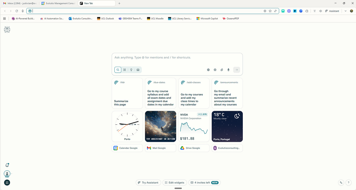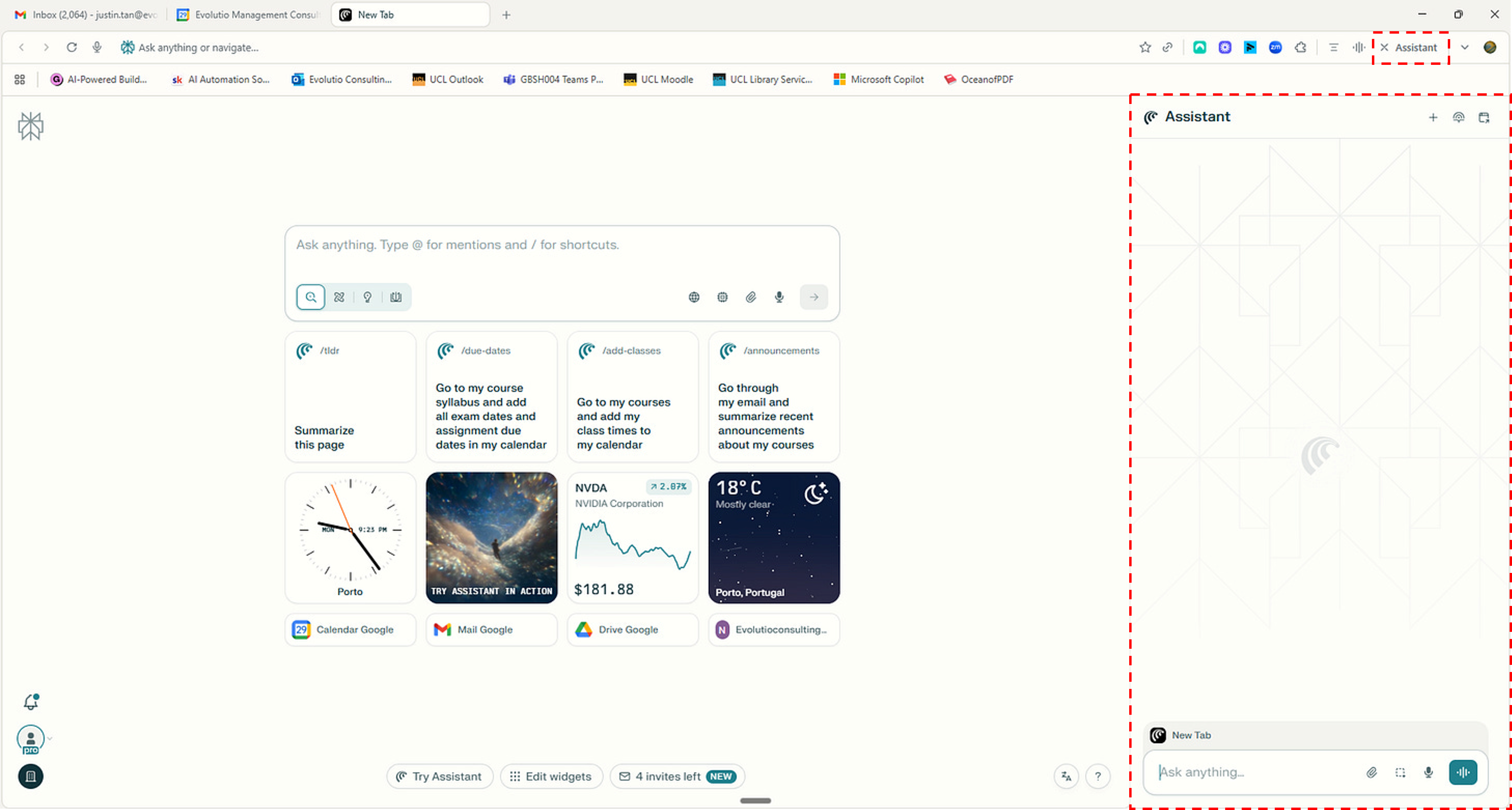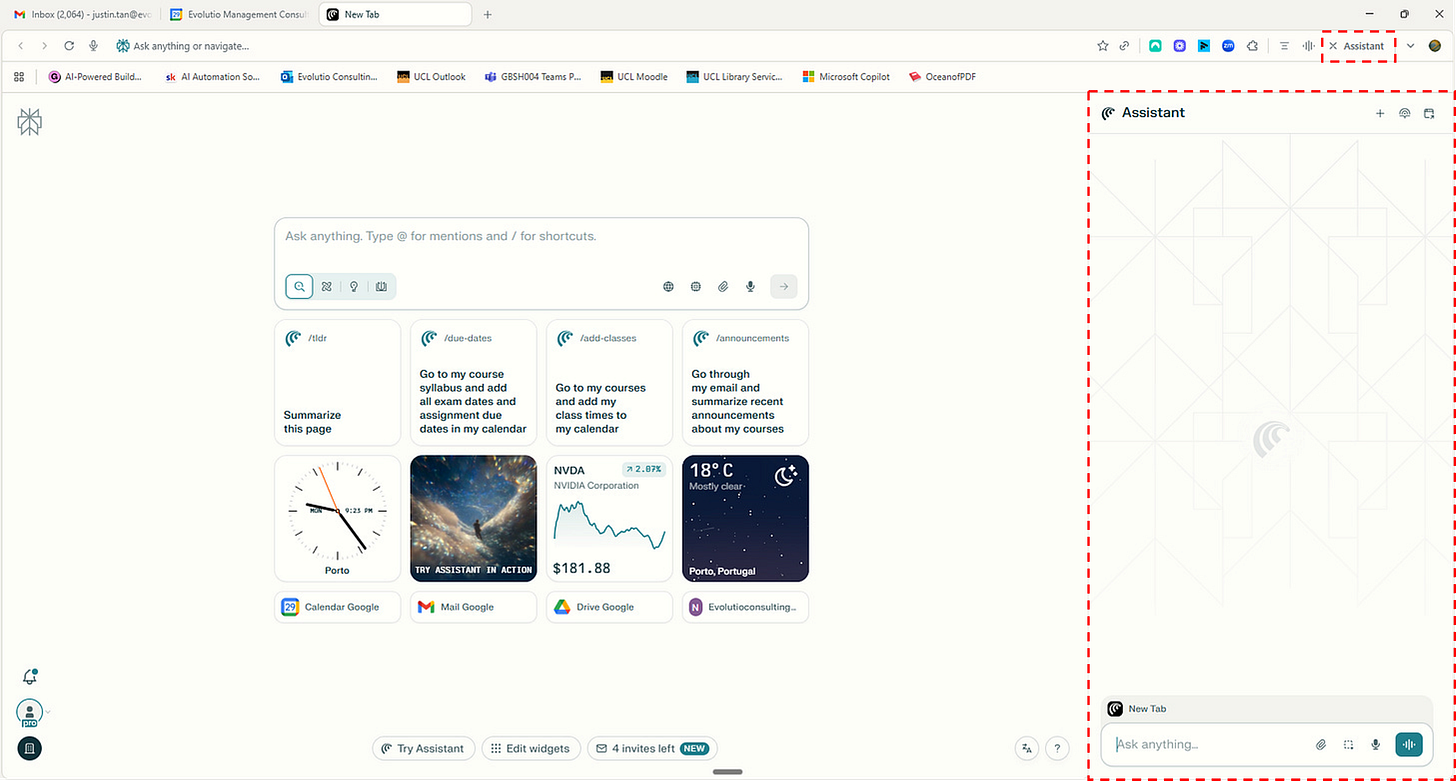 Unlike the search box, which is optimised for queries, the Assistant sidebar is designed for ongoing dialogue and task execution. Here you can issue complex instructions, reference multiple tabs using @tab syntax, access your browsing history, and build reusable Shortcuts (more to come on these capabilities).